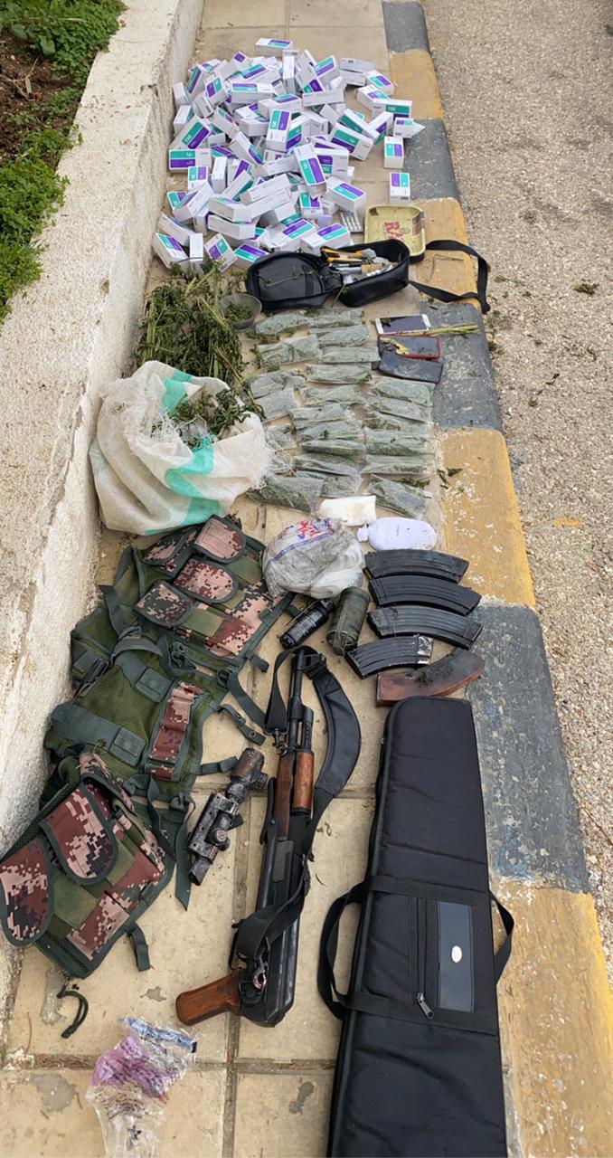 وتابع الناطق الاعلامي انه "جرى ضبط شخص آخر كان برفقته اضافة الى سلاح ناري اوتوماتيكي وكمية من الذخيرة و10 الاف حبة مخدرة وعدد من اشتال الماريجوانا وأكياس تحوي ذات المادة معدة للبيع وكميات اخرى من المواد المخدرة المتفرقة وبوشرت التحقيقات".