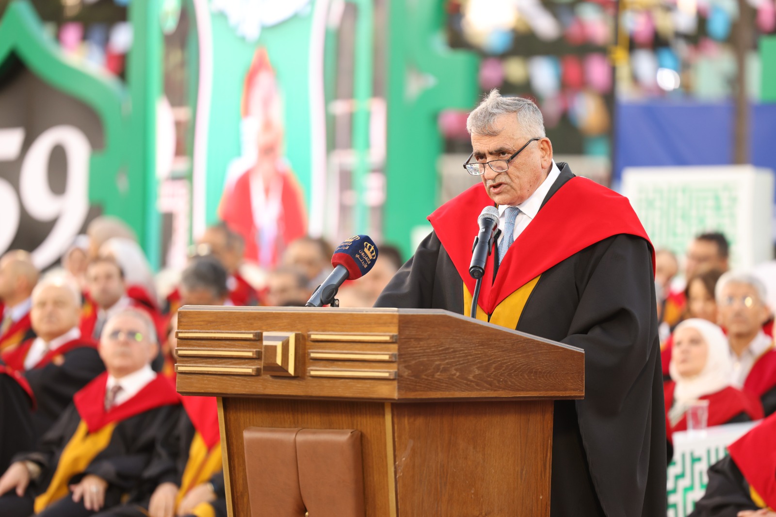 إلى ذلك، قال نائب رئيس الجامعة للشؤون الإدارية والمالية رئيس اللجنة العليا للتخريج الدكتور زياد حوامدة "اليوم ليس مجرد احتفال بالنجاح الأكاديمي، بل تأكيد على القوة والإرادة والإصرار الذي أظهرتموه في رحلتكم العلمية. أنتم خريجونا المميزون، الذين سيسهمون بلا شك في بناء مستقبل مشرق ومتجدد، محققين طموحاتكم ومواصلين مسيرة العطاء والعمل في كل ميدان".