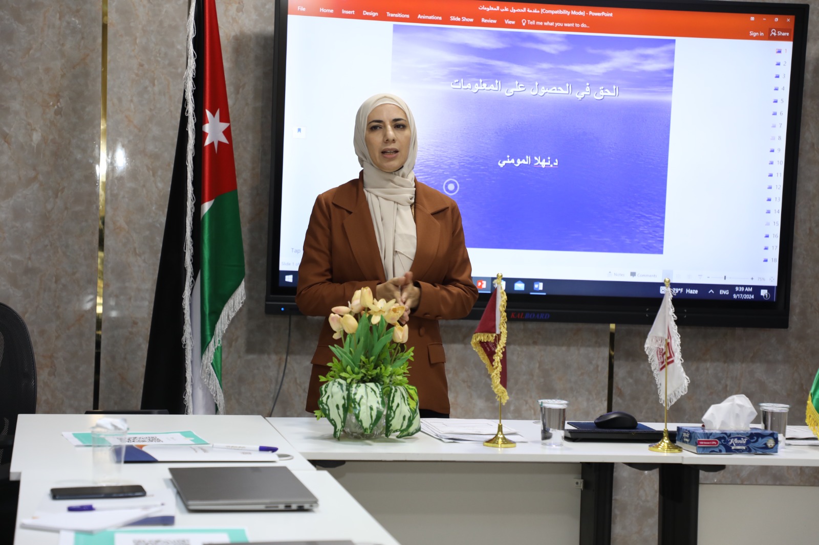 من جانب آخر قدمت د. المومني مقدمة حول الحق في الحصول على المعلومات والتشريعات الناظمة في الحق في الحصول على المعلومات.