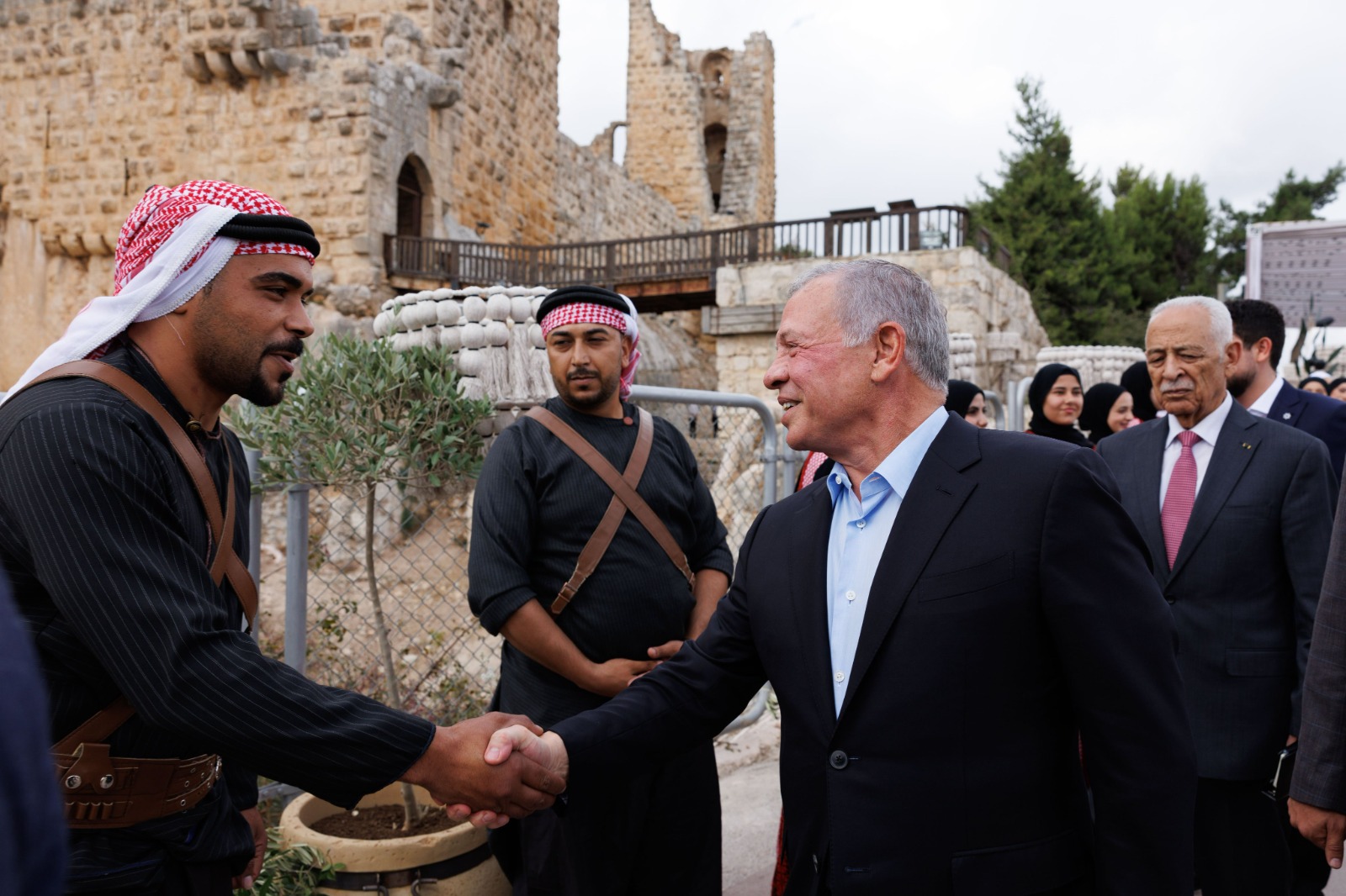 وأعرب جلالته لدى لقائه وجهاء وممثلين عن أبناء محافظة عجلون، بحضور سمو الأمير الحسين بن عبدالله الثاني ولي العهد، عن اعتزازه بوجوده في عجلون العزيزة، ولقائه بأهلها في قلعتها التاريخية.
