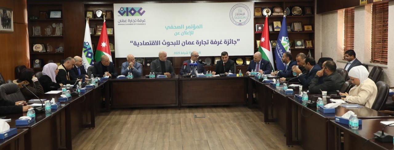 أطلقت غرفة تجارة عمان، السبت، "جائزة غرفة تجارة عمان للبحوث الاقتصادية"، بهدف تشخيص التحديات التي تواجه الاقتصاد الوطني وتقديم حلول وأقعية لها.