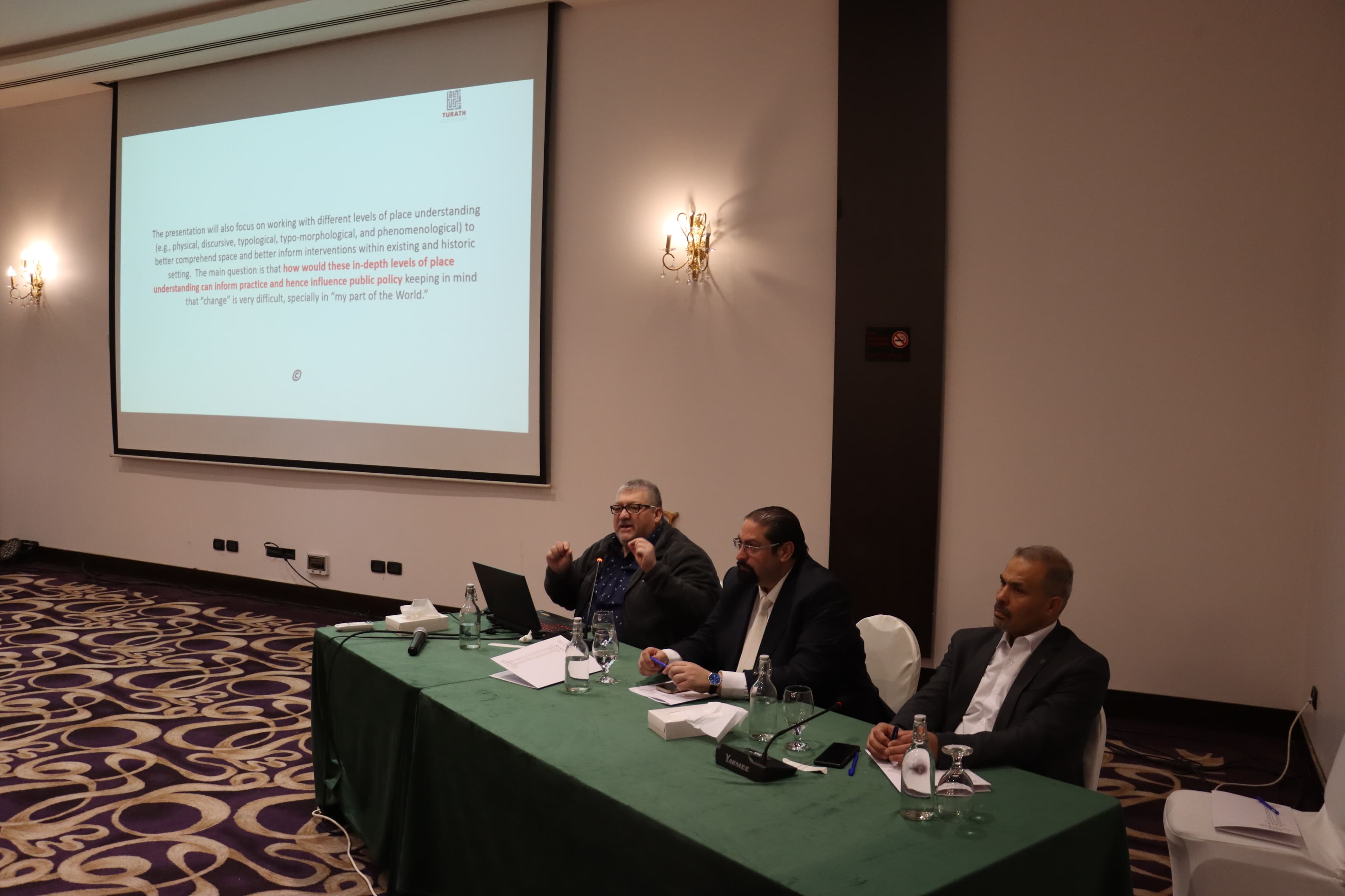 أما الجلسة المسائية فقد شهدت نقاشا غنيًا حول التقاطعات والفجوات بين قطاع حفظ التراث وقطاع الإنشاءات الحديث في الأردن، وحضر الجلسة ممثلون عن شركة كيميا، وهي شركة إيطالية رائدة متخصصة في حلول عالية الأداء لترميم المباني، تدعيم الهياكل والحفاظ على التراث المعماري، وشركة إل. إن الهندسة الإلكترونية ش.م.م، المتخصصة في أنظمة الليزر لحفظ وتنظيف التراث الثقافي، ونقابة المهندسين الأردنيين، وشركات بناء أردنية، ومؤسسات وهيئات أكاديمية وطنية ودولية