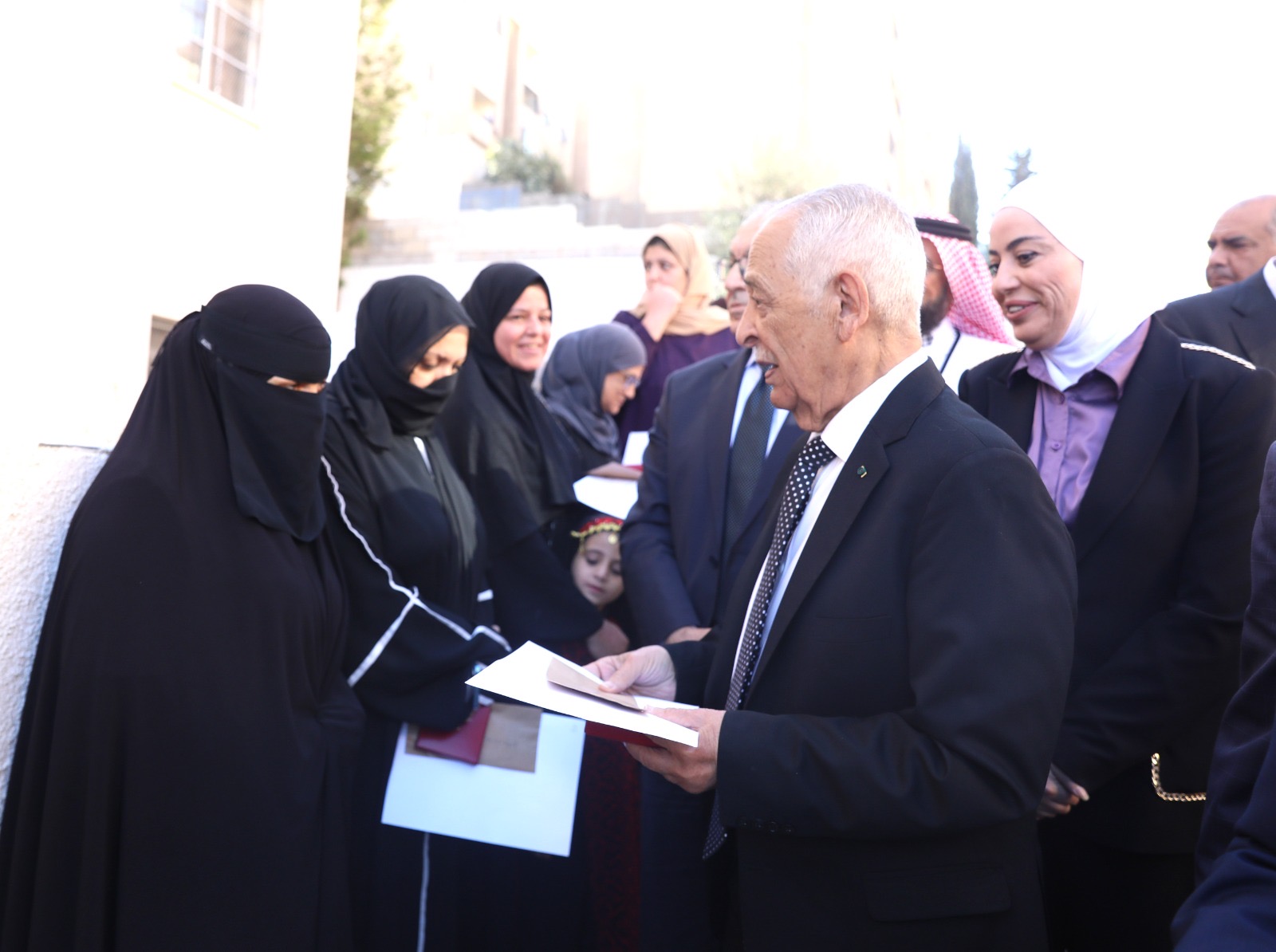 وسلّم رئيس الديوان الملكي الهاشمي يوسف حسن العيسوي، رئيس لجنة متابعة تنفيذ مبادرات جلالة الملك، مفاتيح الشقق السكنية وشهادات الانتفاع للأسر المستفيدة، بحضور وزير الأشغال العامة والإسكان المهندس ماهر أبو السمن، ووزيرة التنمية الاجتماعية وفاء بني مصطفى، ومحافظ العاصمة ياسر العدوان، ومدير عام مؤسسة الإسكان والتطوير الحضري جمانة العطيات، ومدير مكتب الأردن في هيئة الأعمال الخيرية العالمية – الإمارات العربية المتحدة رائد صبري أبو علفة.