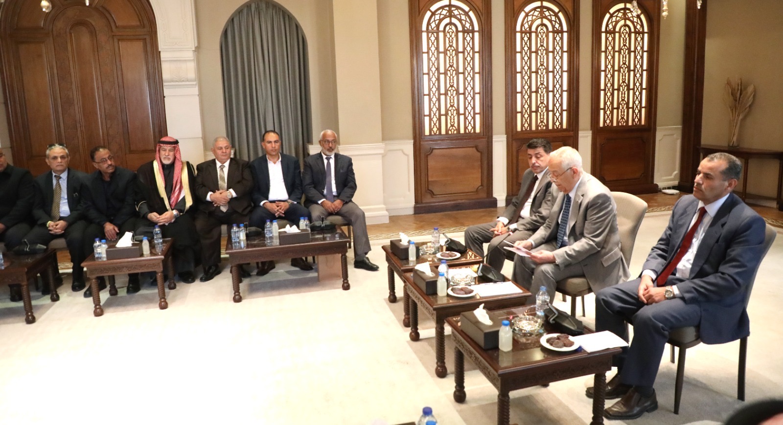 التقى رئيس الديوان الملكي الهاشمي يوسف حسن العيسوي، اليوم الأربعاء، في الديوان الملكي الهاشمي، وفدًا من شباب وشابات لواء الكورة، ووفدًا من ملتقى ديوان عشائر النعيم في شمال المملكة.