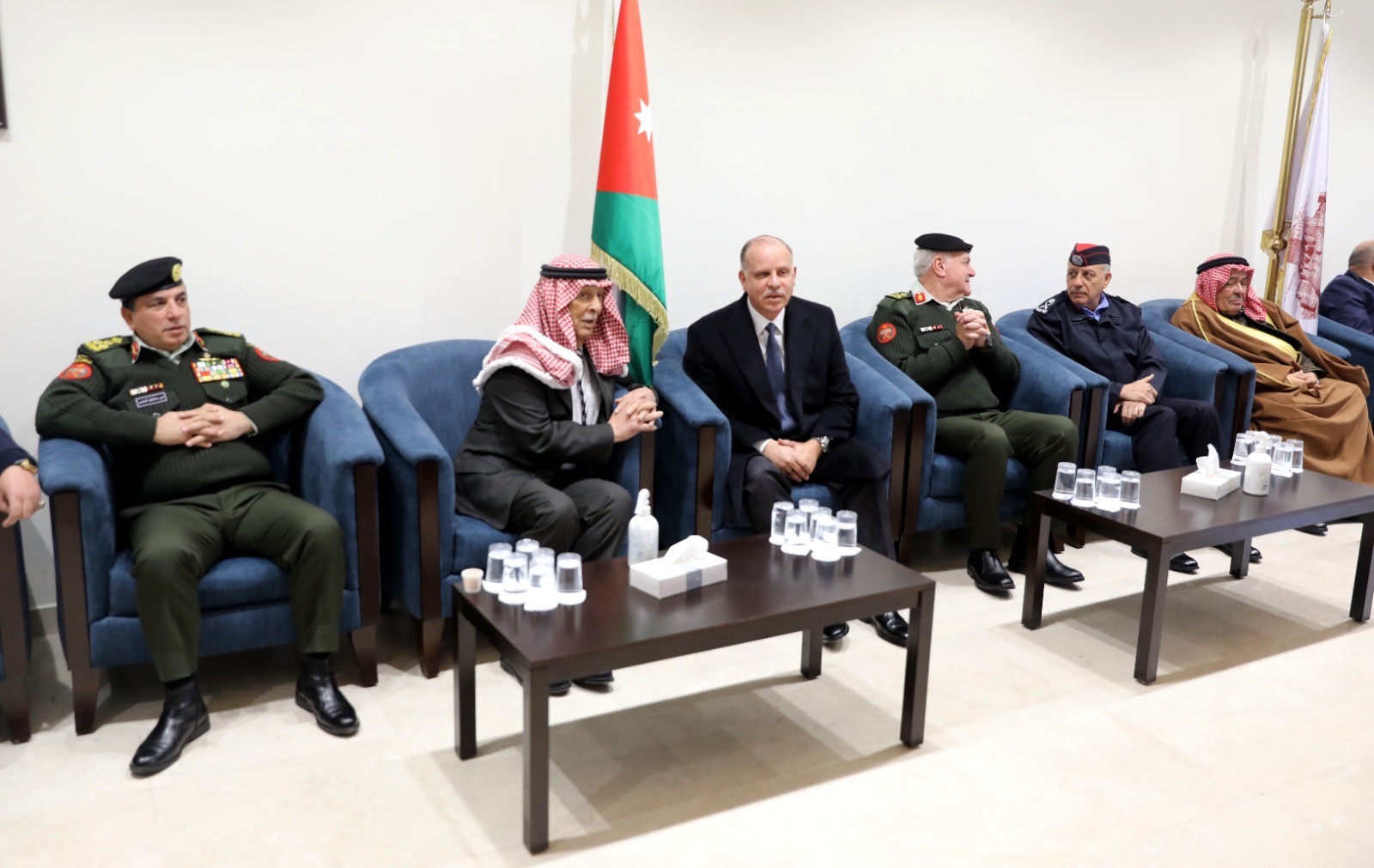 كما قدّم واجب العزاء دولة رئيس الوزراء الدكتور جعفر حسان، ودولة رئيس مجلس الأعيان فيصل الفايز، ومعالي رئيس مجلس النواب مازن القاضي، وعطوفة رئيس هيئة الأركان المشتركة اللواء الركن يوسف الحنيطي، وعطوفة مدير دائرة المخابرات العامة اللواء أحمد حسني، وعطوفة مدير الأمن العام اللواء عبيدالله المعايطة، إلى جانب عدد من الشيوخ والوجهاء من مختلف محافظات المملكة.