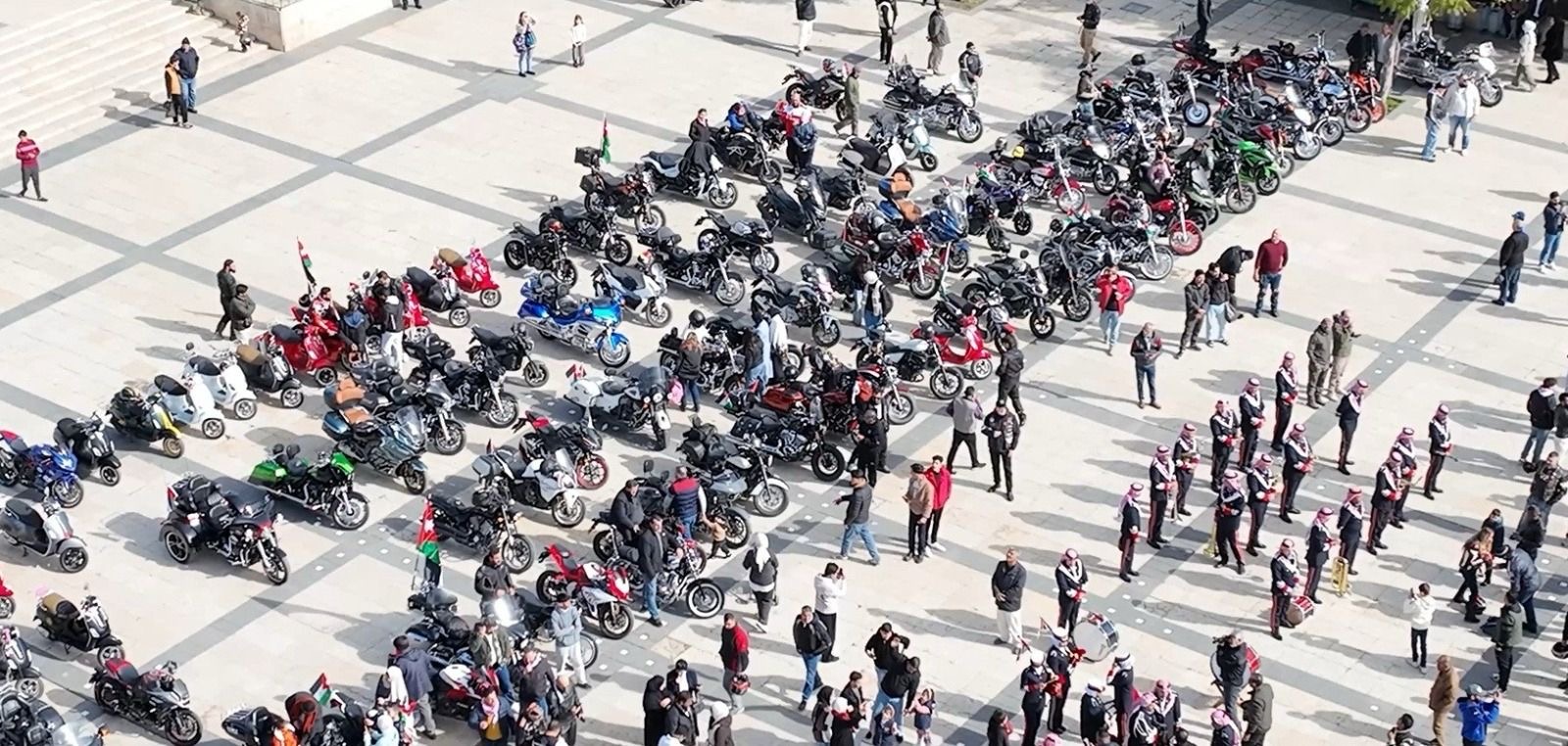 وشارك في المسيرة التي انطلقت صباح اليوم الجمعة مئات الدراجات النارية في موكب احتفالي مهيب تجسدت فيه مشاعر الولاء الفخر والاعتزاز بجلالة الملك، وجابت المسيرة عدداً من شوارع العاصمة عمّان وصولاً إلى الساحة الهاشمية في منطقة وسط البلد، حيث استُكملت الاحتفالات بمعزوفات لموسيقات الأمن العام مع أجمل الألحان الوطنية المميزة التي تغنّت بعيد ميلاد قائد الوطن الميمون.