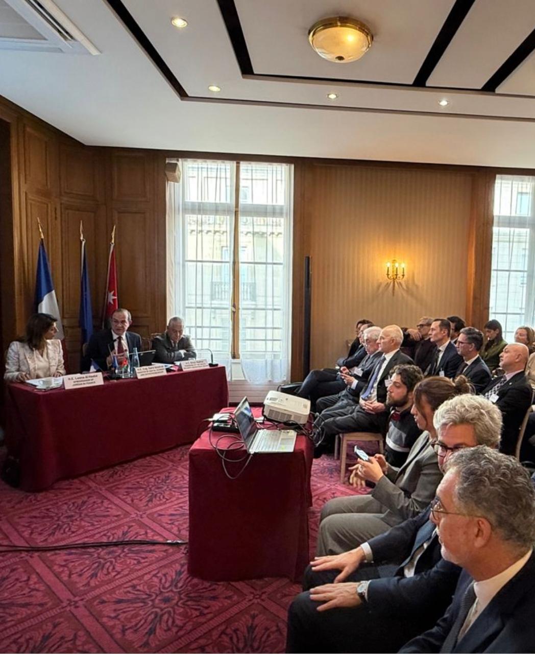 وأكد الوزراء، أمام مسؤولي وممثلي القطاعات الاقتصادية والاستثمارية الفرنسية، أهمية توسيع الشراكات الاستثمارية في الأردن بوصفه منطلقا آمنا وجاذبا للاستثمار في المنطقة، لا سيما في ظل المزايا التنافسية والبيئة الاستثمارية المستقرة والمحفزة في المملكة، كما جرى تسليط الضوء على الإصلاحات الاقتصادية والتشريعية التي تنفذها الحكومة لتعزيز تنافسية بيئة الأعمال وتهيئة مناخ جاذب للاستثمار.