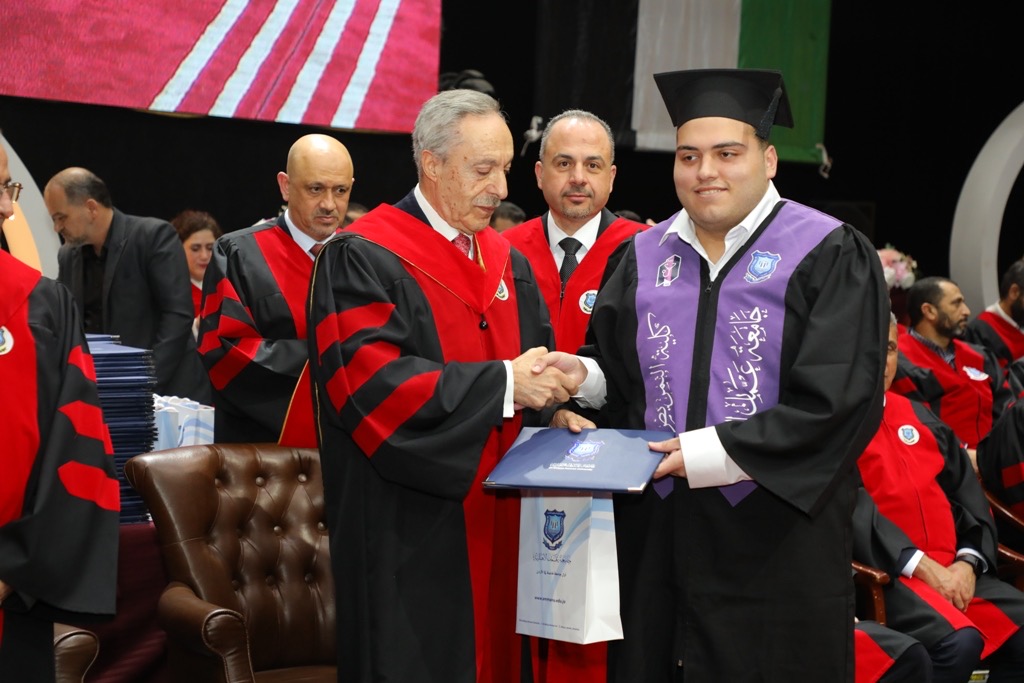 واختتم كلمته بالقول : إننا في جامعة عمّان الأهلية، ونحن نحتفي بتخريج فوجٍ جديد من أبنائنا وبناتنا، نؤكد فخرنا واعتزازنا بقيادتنا الهاشمية الحكيمة، وبالمواقف الوطنية المشرفة لصاحب الجلالة الملك عبد الله الثاني ابن الحسين، حفظه الله، والتي تجسّد إرادةً وطنيةً راسخة تعبّر عن وحدة الأردنيين على اختلاف أصولهم ومنابتهم.وفقنا الله جميعاً لخدمةِ جامعتِنا وخدمةِ أردننا الغالي في ظل حضرة صاحب الجلالة الهاشمية الملك عبد الله الثاني ابن الحسين وولي عهده الأمين.