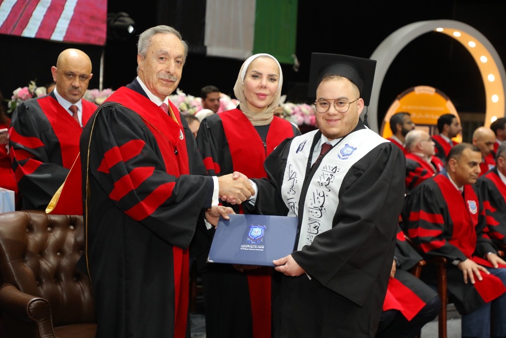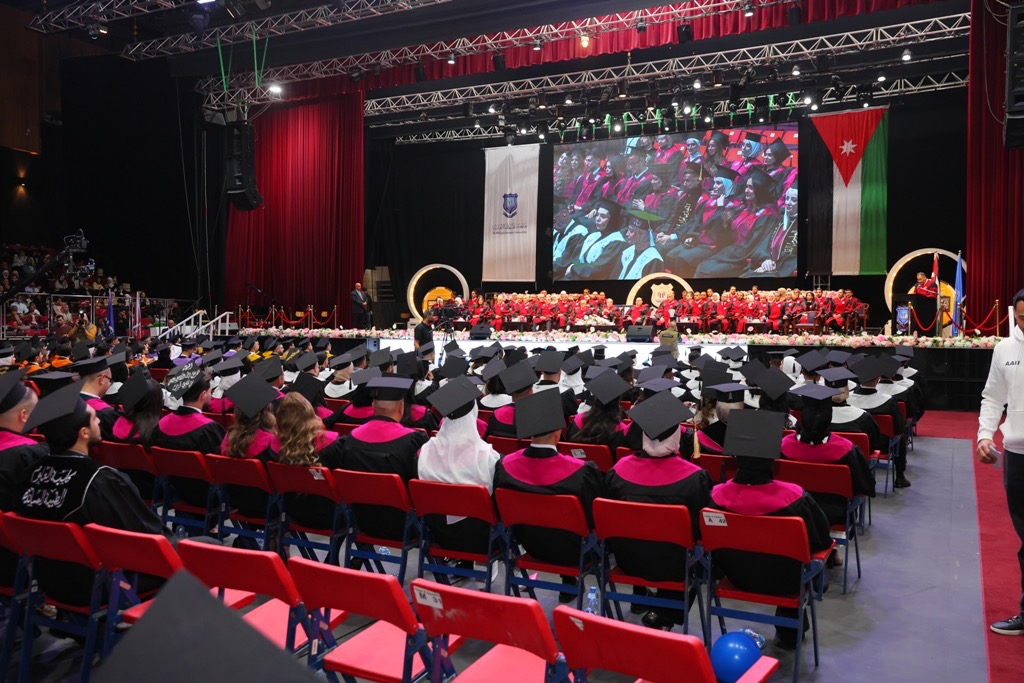 رعى دولة الاستاذ عبدالكريم الكباريتي رئيس مجلس أمناء جامعة عمان الاهلية مساء أمس 16-2-2026 على مسرح الأرينا احتفال الجامعة لليوم الثاني بتخريج طلبتها للفصل الاول 2025-2026 من الفوج (33) لكليات : " الهندسة، الصيدلة، تقنية المعلومات، التمريض، العمارة والتصميم، والعلوم الطبية المساندة والتكنولوجيا الزراعية " ، بحضور الاستاذ الدكتور ساري حمدان رئيس الجامعة ، والاستاذ عمر الحوراني نائب رئيس هيئة المديرين ، وعدد من أعضاء مجلس الأمناء ، ونائب رئيس الجامعة الاستاذ الدكتور احمد حمدان " عميد كلية طب الاسنان " ، ومساعد الرئيس لشؤون الاعتماد والجودة والتخطيط الدكتور إياد شعبان، والسادة العمداء ، وأعضاء الهيئة التدريسية ، وعدد من أعضاء الهيئة الإدارية ، وحشد كبير من ذوي الطلبة الخريجين والمدعوين.