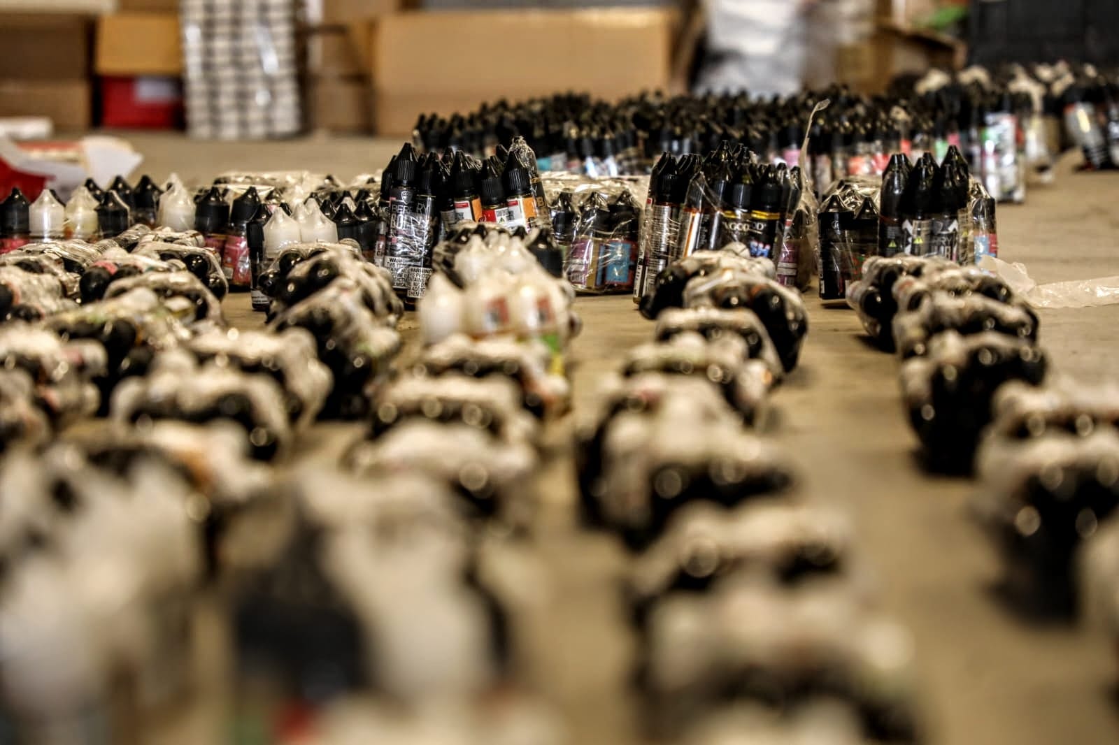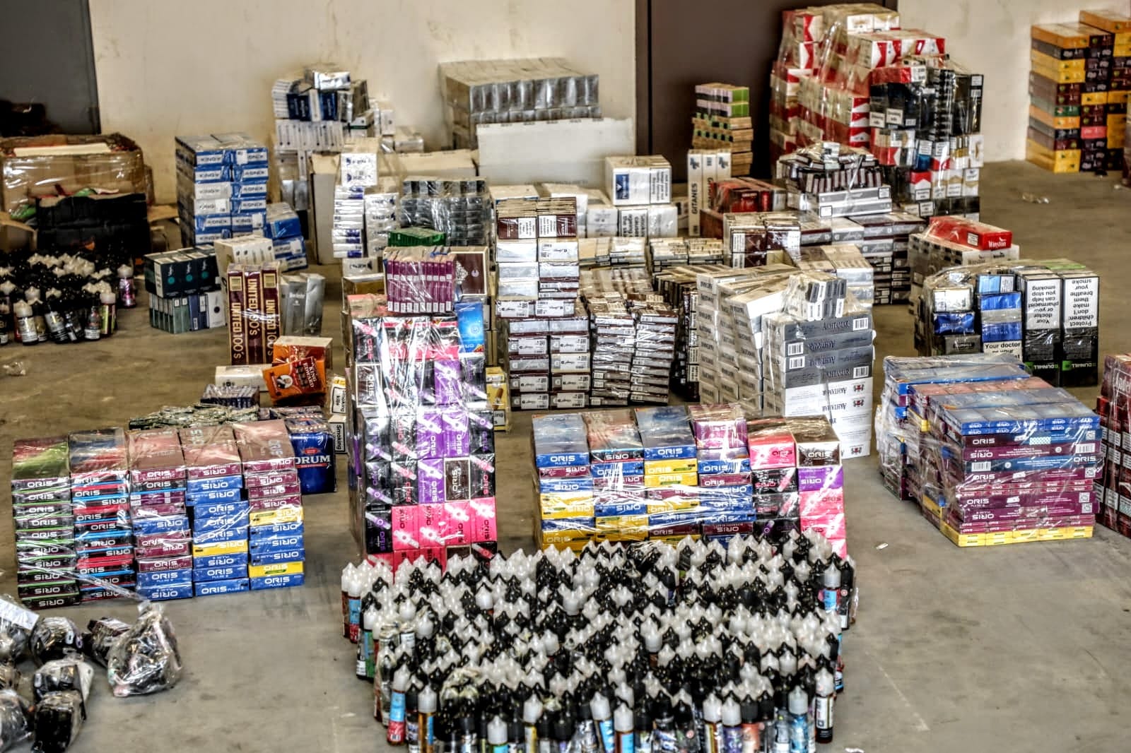 حيث أن المضبوطات اشتملت على 6500 عبوة جوس ونصف طن معسل مشكل وتبغ 20 كيلو غير صالح للاستهلاك 2000 كروز دخان وبودات للسجائر الإلكترونية عدد 280 وبضائع مقلدة ممنوعة متنوعة.