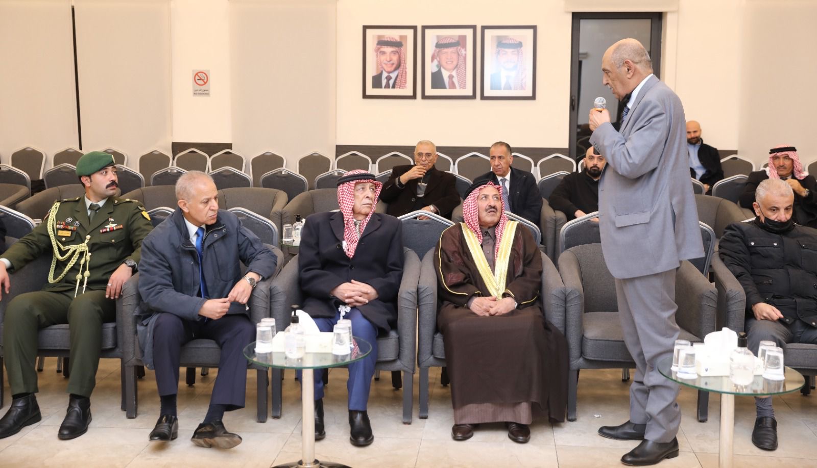 مندوبًا عن جلالة الملك عبدالله الثاني وسمو الأمير الحسين بن عبدالله الثاني، ولي العهد، قدّم رئيس الديوان الملكي الهاشمي يوسف حسن العيسوي، اليوم الأحد، واجب العزاء إلى عشائر المجالي والفايز والهميسات والصحن.