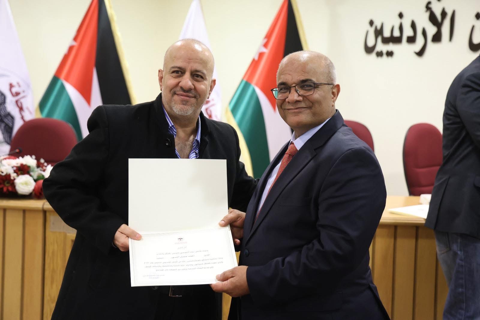وقال نقيب الصحفيين الأردنيين الزميل طارق المومني، إن هذا التكريم يأتي تقديراً لمسيرة العطاء والالتزام المهني، ولتكريس ثقافة التميز والإبداع في العمل الصحفي، مؤكداً أن الصحافة الأردنية تزخر بالكفاءات القادرة على مواكبة التحولات المتسارعة في المشهد الإعلامي.