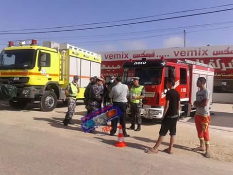 هذا وقد تواجد في مكان الحادث مدير دفاع مدني محافظة اربد العميد منيب العواوودة حيث اشار بان الحالة العامة لجميع الاصابات جيدة ، وان سبب الحادث يعود لتشرب وانتشار غاز كلوريد الهيدروجين وهي مادة تستخدم في تصنيع مادة الكلور .وبين العواوودة بان فرق الدفاع المدني التي تعاملت مع الحادث أكتشفت بان اجراءات السلامة العامة في الشركة ضعيفة جداً ، وهو ما ساعد على انتشار الغاز فور تسربه .
