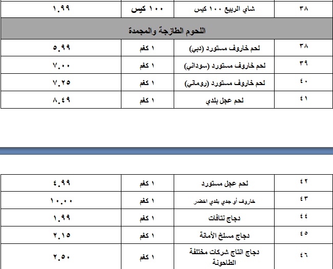 نشرة جديدة لاسعار المواد التموينية .. جدول