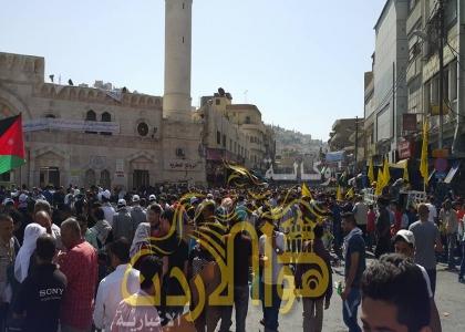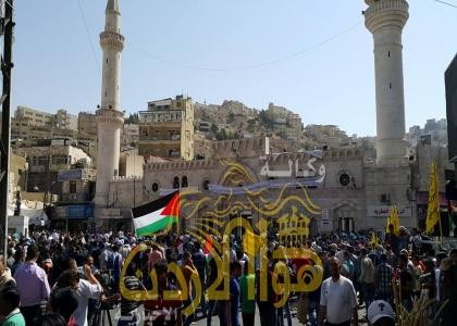 انطلقت مسيرة حاشدة عقب صلاة ظهر الجمعة، من أمام المسجد الحسيني بإتجاه ساحة النخيل في وسط البلد بالعاصمة عمان.