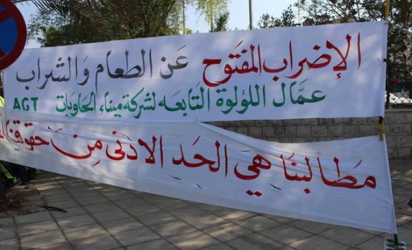 وأكد الناطق الاعلامي باسم العمال المعتصمين محمود القطاونة أن العمال بدأوا اضربا مفتوحا عن الطعام ابتداء من صباح اليوم احتجاجا على المس بأرزاقهم، وانهاء خدماتهم من قبل شركة اللؤلؤة وشركة ميناء الحاويات.