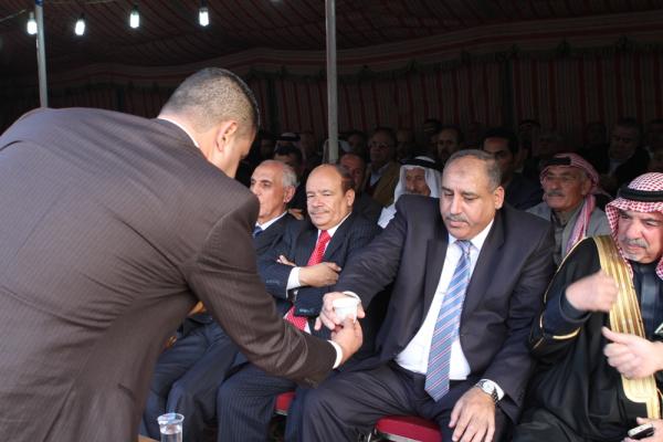 وكان والد الشهيد جعفر الملكاوي رحب بالجاهة واكد على ان ولده الشهيد كمال كان يؤدي واجبه الوطني باخلاص وتفان واعلن قبوله لمراسم الصلح، مهدياً الجميع تحيات جلالة الملك قائلا"ان الملك يشعر انه بينكم الان،مضيفاً " ساعطيكم صلحة وليست عطوة".