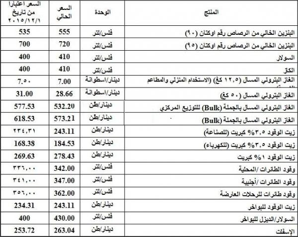 قررت الحكومة تخفيض أسعار البنزين بنوعيه 90 و95 قرشين، والديزل والكاز قرشا واحداً، فيما رفعت اسطوانة الغاز نصف دينار .
