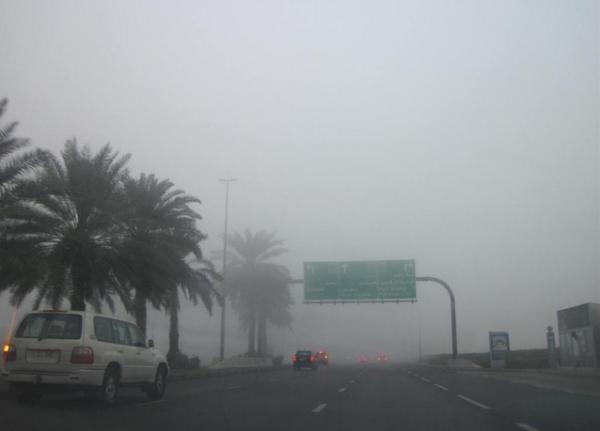 يلف الضباب الكثيف العديد من مناطق المملكة لاسيما الشمالية والوسطى، فيما يتواصل سقوط الامطار.