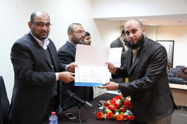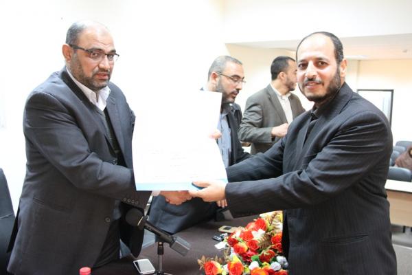 نظَّمت الإدارة العامة للتحفيظ التابعة لوزارة الأوقاف والشئون الدينية حفلاً تكريماً، استهدف طلاب المخيم القرآني المغلق الثاني من نوعه لعام 2015 م ، تحت رعاية وكيل وزارة الأوقاف والشئون الدينية الدكتور حسن الصيفي ، وبحضور كل من مدير عام الإدارة العامة للتحفيظ الأستاذ عبد الهادي الأغا ومدير التحفيظ الأستاذ عماد الدجني ومدير ديوان القراء الأستاذ عادل الهور ولفيف من الموظفين الكرام.