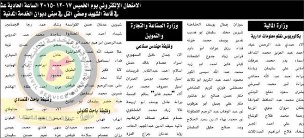 دعا ديوان الخدمة المدنية التالية أسماؤهم مراجعته الخميس المقبل لأداء الامتحان التنافسي التحريري والإلكتروني .