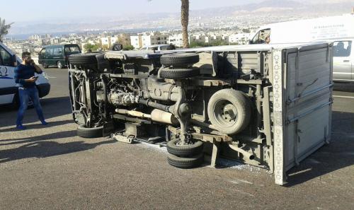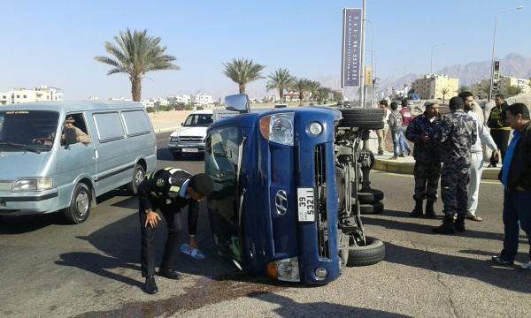 حادث تدهور مركبه على مثلث اسكان الجيش واصابه سائقها.... صور