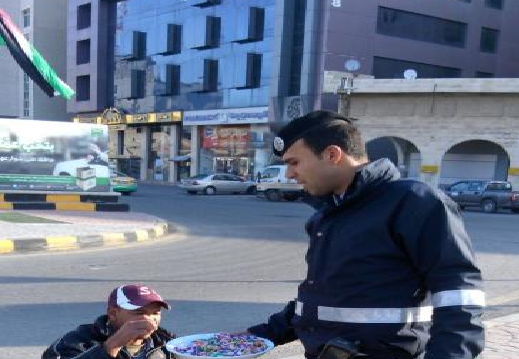 حيث وزع رجال ادارة السير الحلوى على سالكي الطرق بمركباتهم والمارة بمناسبة عيد المولد النبوي الشريف ، وعيد الميلاد المجيد .