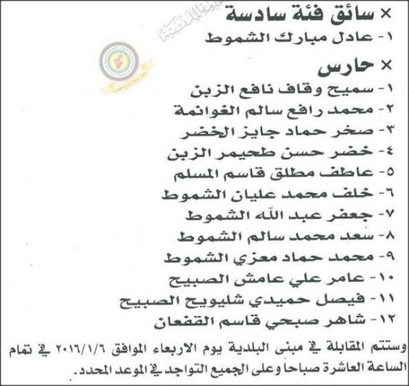 دعا صندوق المعونة الوطنية ومعهد الإدارة وسلطة وادي الاردن وبلدية العامرية التالية أسماؤهم إلى إجراء مقابلات شخصية لغايات التعيين.