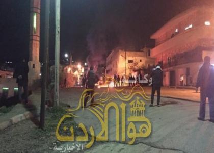 عجلون : تجدد المشاجرة العشائرية واغلاق الطرق بالاطارات .. صور