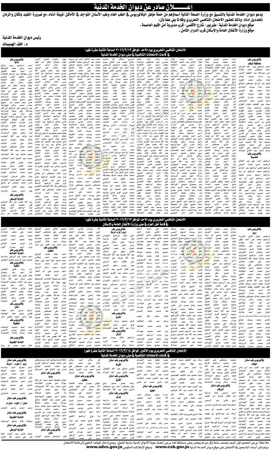 للاطلاع على الاسماء المرشحة لاجراء الامتحان التنافسي التحريري من الاطباء مراجعة الموقع الالكتروني لديوان الخدمة المدنية على الرابط التالي: http://cutt.us/oyf5h