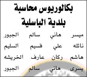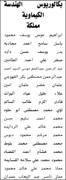 دعا ديوان الخدمة المدنية التالية اسماؤهم إلى التواجد في مبنى ديوان الخدمة لحضور الامتحان التنافسي الثلاثاء 2016 / 3 / 22 ، بالتعاون مع مع رئاسة الوزراء ووزارة الصناعة والتجارة ووزارة التنمية الاجتماعية ووزارة الشؤون البلدية ومؤسسة المواصفات والمقاييس ودائرة الموازنة العامة ودائرة الاحوال المدنية والجوازات وسلطة المياه والمؤسسة العامة للغذاء والدواء.
