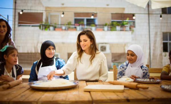 ولا تقتصر نشاطات جلالتها حول الطفل بالاهتمام بكل محيط عالمه بل تشاركه الجانب الإنساني من حياته من خلال نشاطات تقوم بها جلالتها مثل قيامها باصطحاب 42 يتيماً ويتيمة مع مشرفيهم الى مطعم "بيت ستي" لاعداد أطباق الغداء.