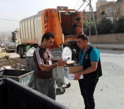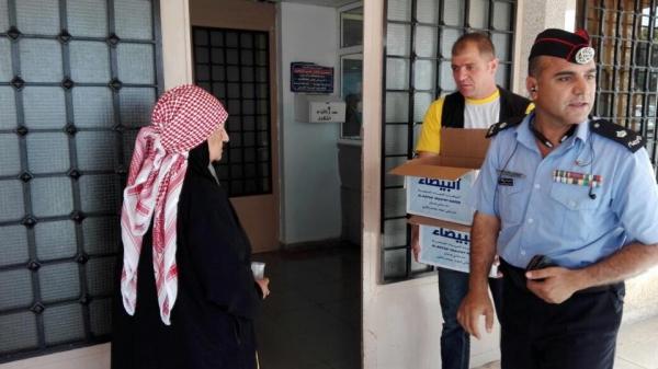 بالصور .. الأمن يوزع الماء على المواطنين في محافظة إربد