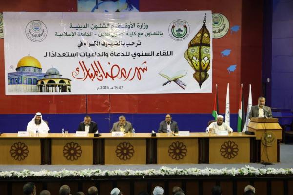 جاء تأكيده خلال اللقاء السنوي للدعاة والداعيات استعدادًا لشهر رمضان المبارك والذي نظمته وزارة الأوقاف بالتعاون مع كلية أصول الدين بالجامعة الإسلامية بحضور ومشاركة رئيس الجامعة أ.د. عادل عوض الله ومدير عام الوعظ د. يوسف فرحات وعميد كلية أصول الدين د. عماد الشنطي والداعية أ.د. سلمان الداية ولفيف من الشخصيات الاعتبارية والدعاة والداعيات.