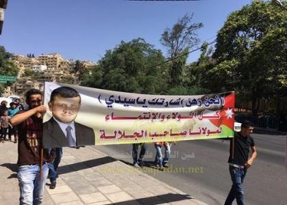 اعتصم العشرات من ابناء عشائر الخريسات والمجالي والخطيب امام الديوان الملكي في رغدان للمطالبة بحب قضية أبنائهم العاملين في الامن العام والموقوفين على ذمة التحقيق بمقتل احد الموقوفين خلال ادائهم لمهامهم الرسمية منذ ما يزيد على عام ونصف .