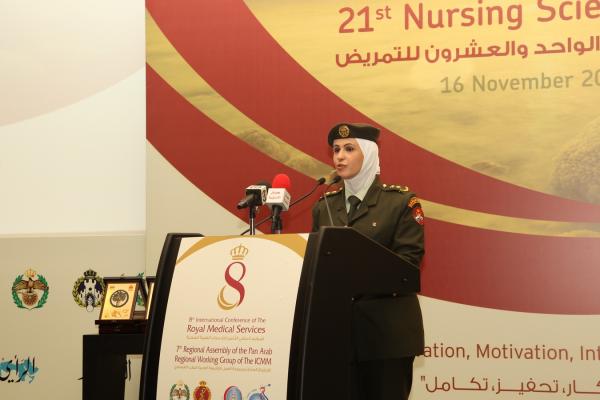 مندوبا عن سمو الأميرة منى الحسين المعظمة أفتتح مدير عام الخدمات الطبية الملكية اللواء الطبيب معين الحباشنة فعاليات اليوم العلمي الواحد والعشرون للتمريض والذي يأتي ضمن فعاليات المؤتمر الدولي الثامن للخدمات الطبية الملكية المنعقد خلال الفترة من 15-18 تشرين ثاني الجاري في قصر المؤتمرات بالبحر الميت بمشاركة أكثر من 5 الاف مشارك ومشاركة من مختلف القطاع الصحية ومن عدة دول عربية وأجنبية