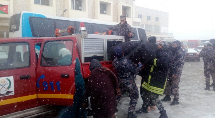 بالصور .. إخلاء 150 معتمر تقطعت بهم السبل قرب الكرك