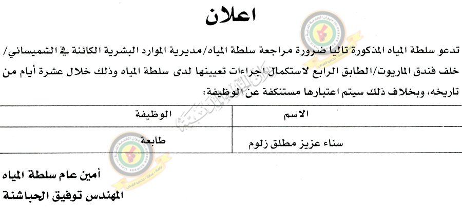 وبحسب ديوان الخدمة، فإن كل من يتخلف عن الحضور يعتبر مستنكفا عن التعيين، داعية اياهم الى احضار الاوراق الشخصية اللازمة .