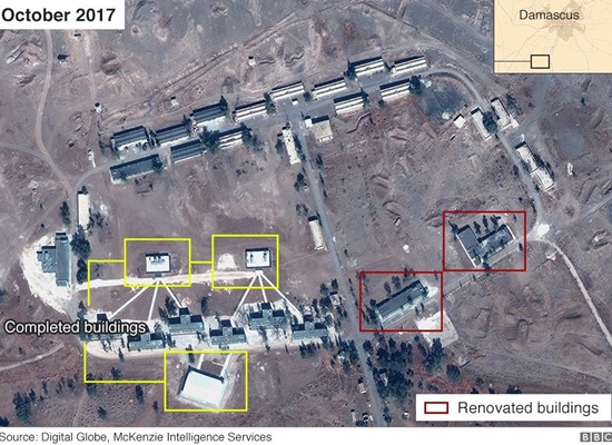 ووفقا لصور التقطتها الأقمار الصناعية بين كانون الثاني/ يناير وتشرين الأول/ أكتوبر من العام الجاري، فإن القاعدة تقام على منطقة تابعة لقوات النظام، وتحديدا على بعد 14 كم من منطقة الكسوة.