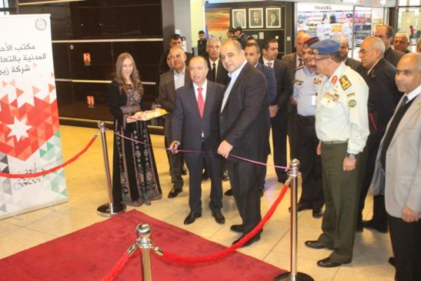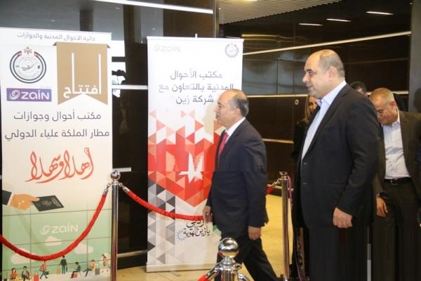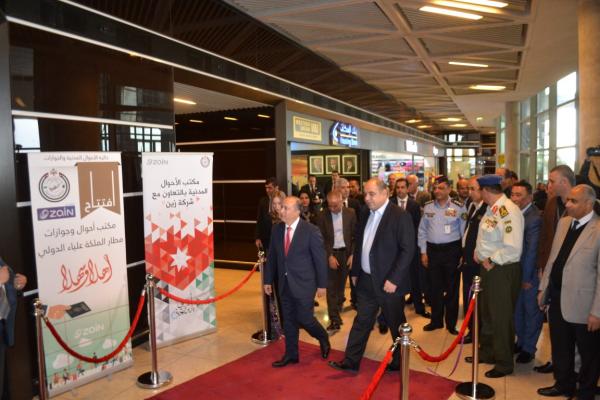 أفتتح مدير عام دائرة الأحوال المدنية والجوازات فواز الشهوان بحضور الرئيس التنفيذي لشركة زين أحمد الهناندة مكتبا لدائرة الأحوال المدنية والجوازات في مطار الملكة علياء الدولي
