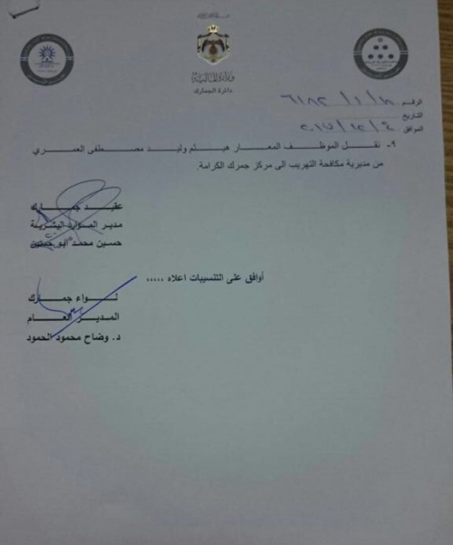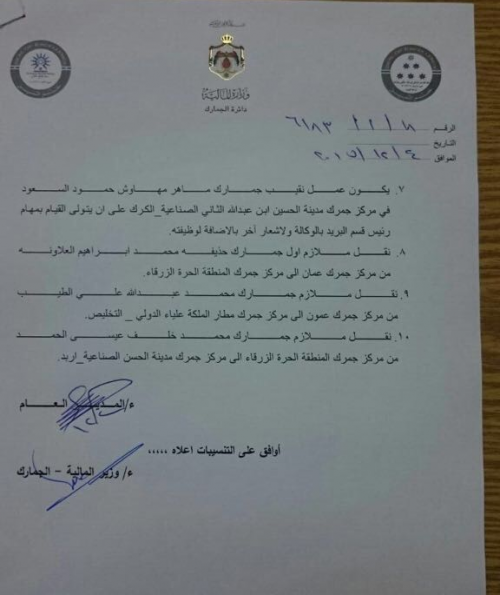 قرر مدير عام الجمارك اللواء وضاح الحمود اجراء تنقلات شملت رتبة عقيد ونقيب ورائد وملازم و عدد من افراد وموظفي الجمارك .