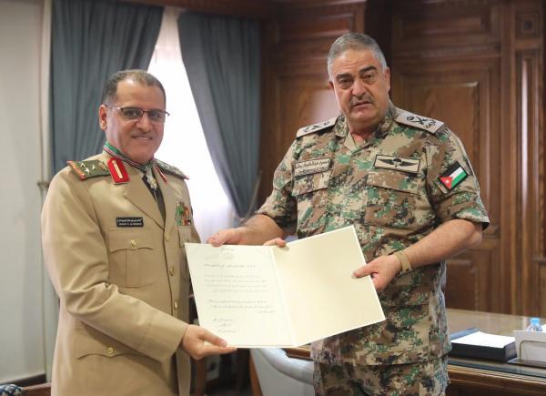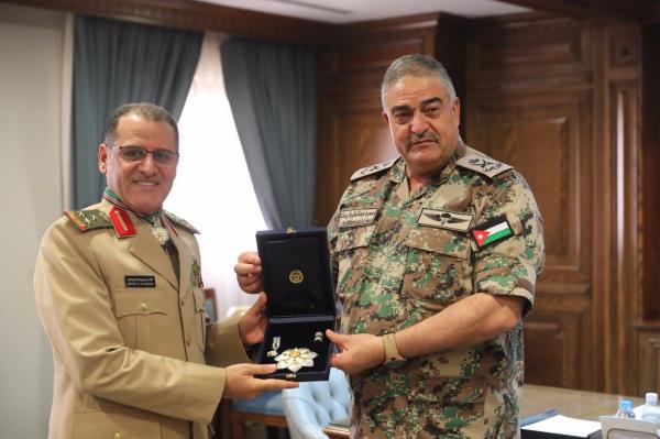 قلّد رئيس هيئة الأركان المشتركة للقوات الاردنية الفريق الركن محمود عبد الحليم فريحات الملحق العسكري السعودي لدى الأردن العميد الركن خالد بن ربيعان الربيعان وسام الاستحقاق العسكري الأردني من الدرجة الثانية اليوم، بعد صدور الإرادة الملكية السامية، بمنحه الوسام تكريماً له وتقديراً لجهوده ودوره في تعزيز العلاقات المشتركة بين البلدين الشقيقين.