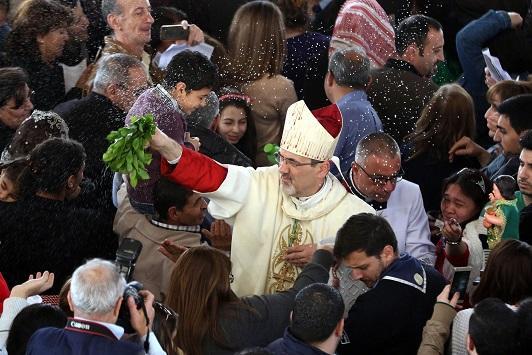 وانطلق موكب الحج تتقدمه الفرق الكشفية نحو كنيسة المعمودية، ليترأس المطران بيتسابالا قداسًا حبريًا حاشدًا بمشاركة النائب البطريركي المطران وليم الشوملي والمطران ياسر عيّاش، ورؤساء الكنائس الكاثوليكية، وحضور ستة آلاف مشارك من المؤمنين القادمين من مختلف المحافظات، وشارك فيه وعدد من سفراء الدول العربية والأجنبية. وعلى وقع ترانيم جوقة يوحنا المعمدان في مادبا، وجوقة الروم الكاثوليك والجوقة المارونية، رش سيادته الحضور بمياه نهر الأردن المباركة.