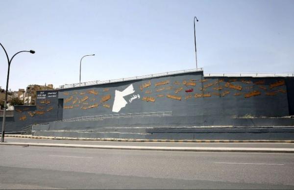 جدارية تحمل خارطة الوطن وأسماء المحافظات على شارع الجيش بعمان18-04-2018 09:20:44 -