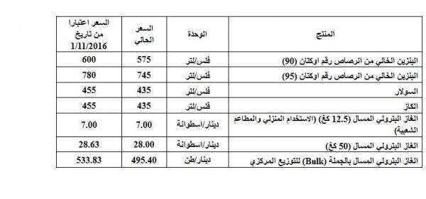 الحكومة ترفع اسعار المحروقات..تفاصيل01-11-2016 10:11:51 -