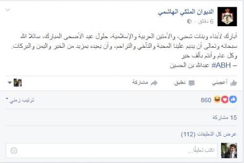 الملك يبارك للشعب الأردني بحلول عيد الأضحى المبارك11-09-2016 07:39:28 -
