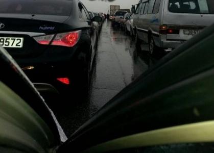 بالصورة .. ازمة سير خانقة على طريق اوتوستراد الزرقاء - المفرق اثر انزلاق شاحنة13-04-2016 11:18:08 -