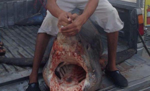 شاهد بالصور .. "عقباوي" يصطاد قرشا بوزن 130 كغم قرب شاطئ الغندور13-04-2016 11:20:59 -
