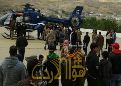 بالصور .. مروحية لنقل شاب سقط عن صدع صخري في منطقة وعرة بغرب الطفيلة19-12-2015 02:04:53 -