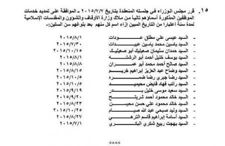 التمديد لـ (14) موظفاً في الأوقاف وإلغاء تقاعد مهندسين في البيئة23-07-2015 11:07:48 -